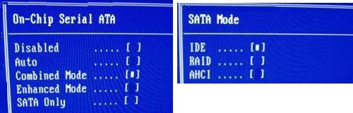 請將BIOS設(shè)置成:Compatible(兼容模式)和IDE(ATA模式),如下圖: