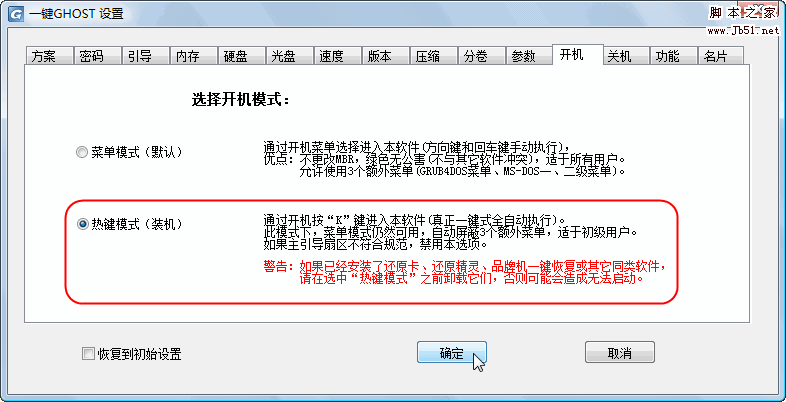 啟動過程中將自動跳過3個額外菜單,直達(dá)一鍵備份或一鍵恢復(fù)警告對話框(10秒后自動執(zhí)行)