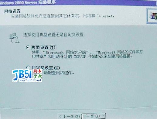15、到此,系統出現網絡設置對話框,共有兩個選項,分別是“典型設置”和“自定義設置”,如下圖所示: