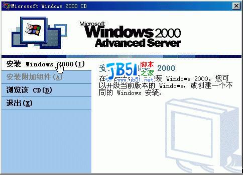1、在windows 98 系統中,插入win2000光盤,由于光盤是自動運行的,所以會彈出如下圖所示的對話框: