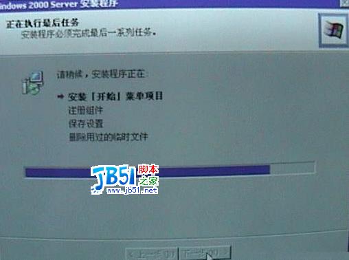 17 安裝的最后時刻到來了,執行最后任務,安裝程序花幾分鐘時間進行安裝與配置 WIN2000 組件。此時不再需要用戶進行操作,完成是由 dindows 2000 所提供的,列表如下: