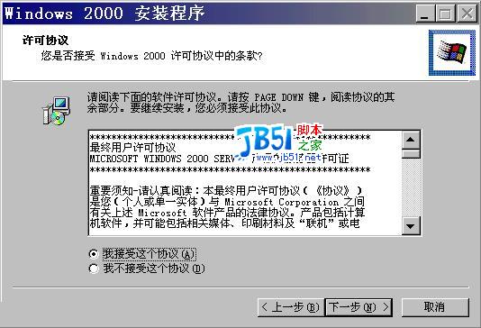 2、在此,我們不選擇升級到 windows2000 中,點擊“否”按鈕,返回安裝對話框,并且點擊“安裝 windows 2000”,開始安裝,如下所示: