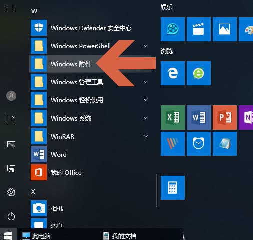 3、點(diǎn)擊開(kāi)始菜單中的【Windows附件】。