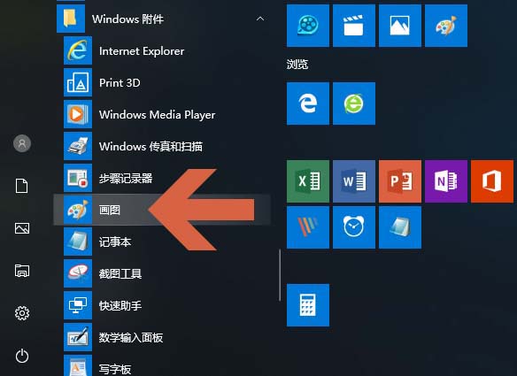 4、點(diǎn)擊Windows附件中的【畫(huà)圖】。