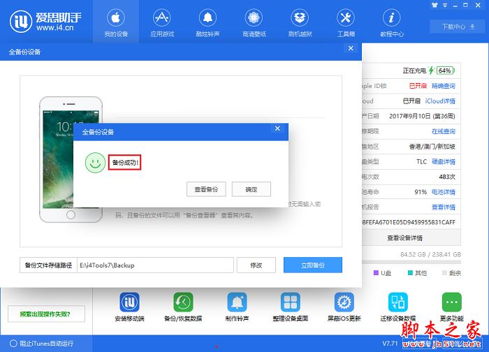4.設備的數(shù)據(jù)所占空間越多,備份時間越久,有時可能長達數(shù)小時,請耐心等待備份成功。