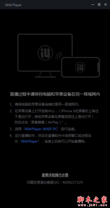 這里需要注意的是,通過【手機(jī)投屏直播】工具連接設(shè)備,一定要保持電腦與蘋果設(shè)備在同一個(gè)局域網(wǎng)內(nèi)才可以連接;