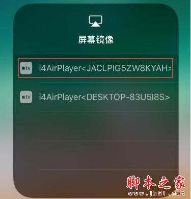 2、打開【設(shè)備控制中心】---【屏幕鏡像】,查看電腦名稱,選擇相對應(yīng)電腦名稱與i4AirPlayer進(jìn)行連接;