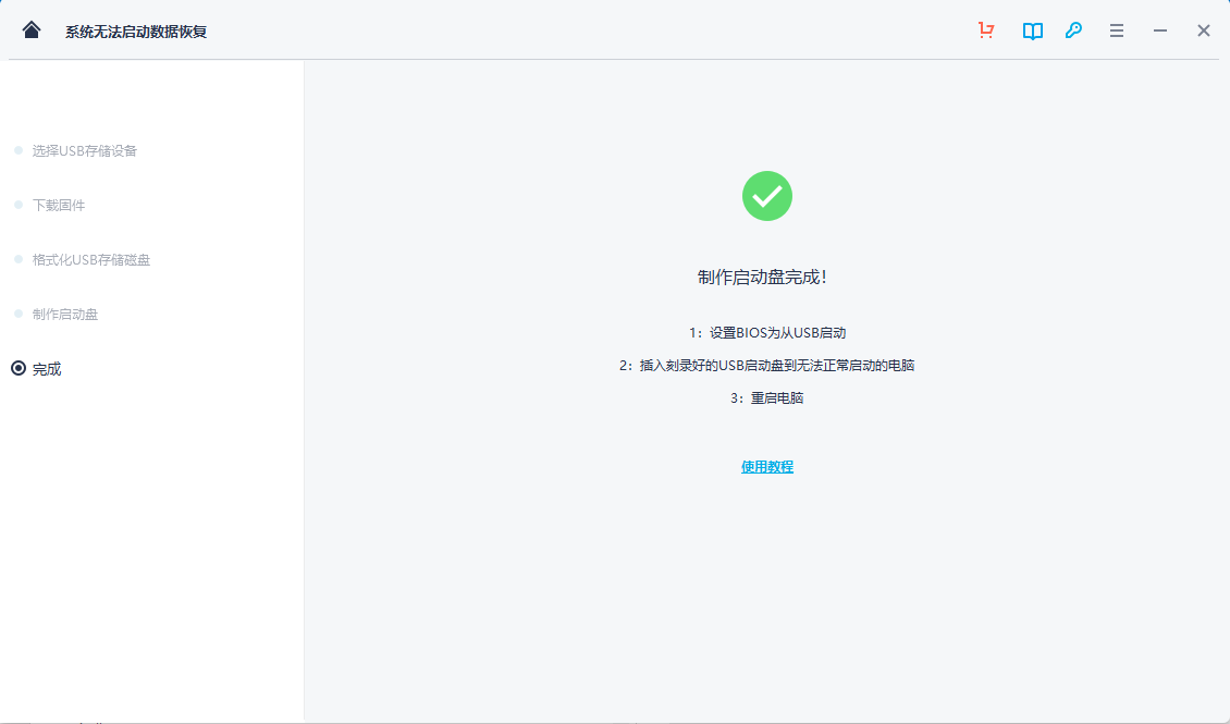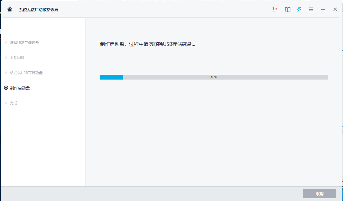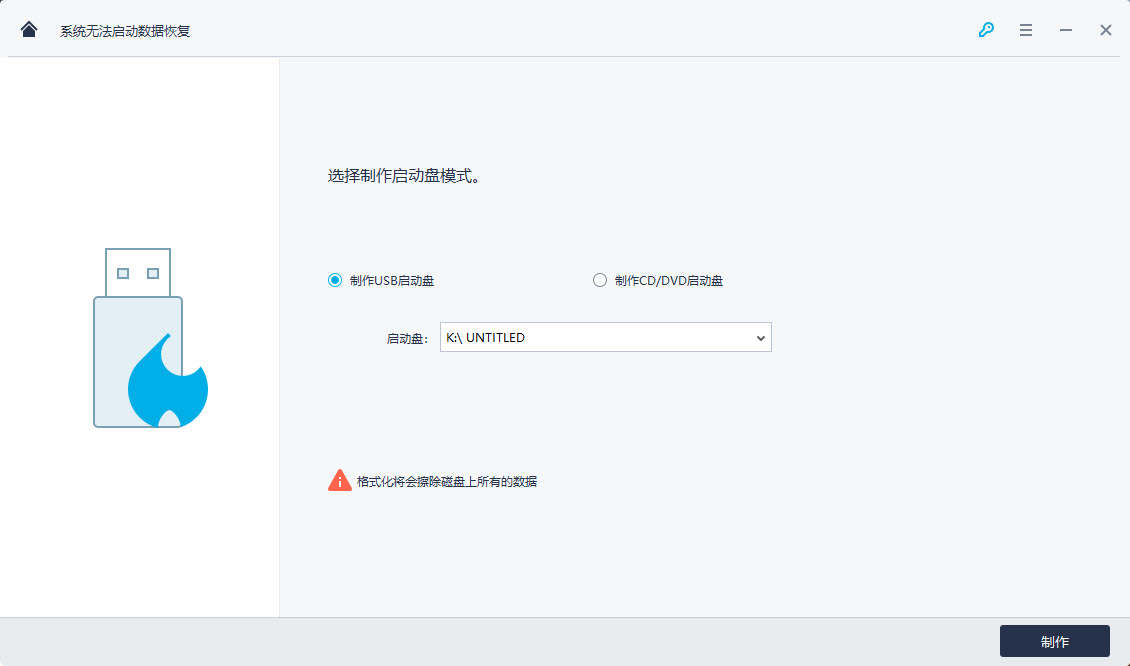 啟動盤可以幫助你提取已崩潰系統的數據。因此,當你的Windows系統無法啟動時,趕快先制作一個啟動盤吧。點擊“開始”繼續。