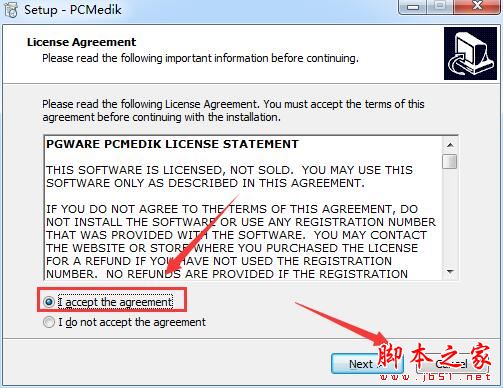 3、選擇"I accept the agreement"點擊next