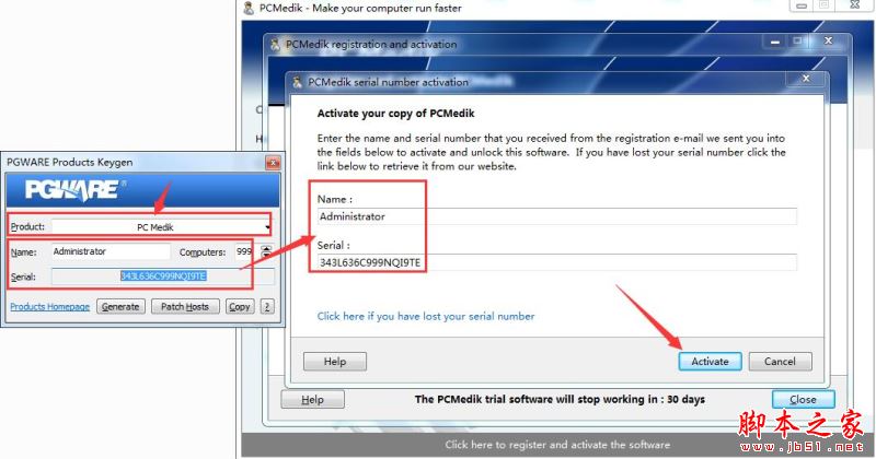 13、運行軟件包里的Keygen.exe注冊機,在Product里選擇PCmedik,將注冊機生成的用戶名及注冊碼,填入軟件注冊界面相應的信息里,點擊Activate(注操作此步驟時一定要斷網,否則注冊不成功的)