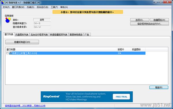 隱身專家是一款快速隱藏窗口的軟件,在關鍵時刻,您只需要按下鼠標的滾輪鍵,就可以快速隱藏屏幕上的內容(所有窗口),防止他人看見,保護您的隱私。稍后還可以重新將窗口顯示。隱身專家雖然適用于做一些不想讓老板看到的操作,比如上班時間干私活,或者瀏覽網站。