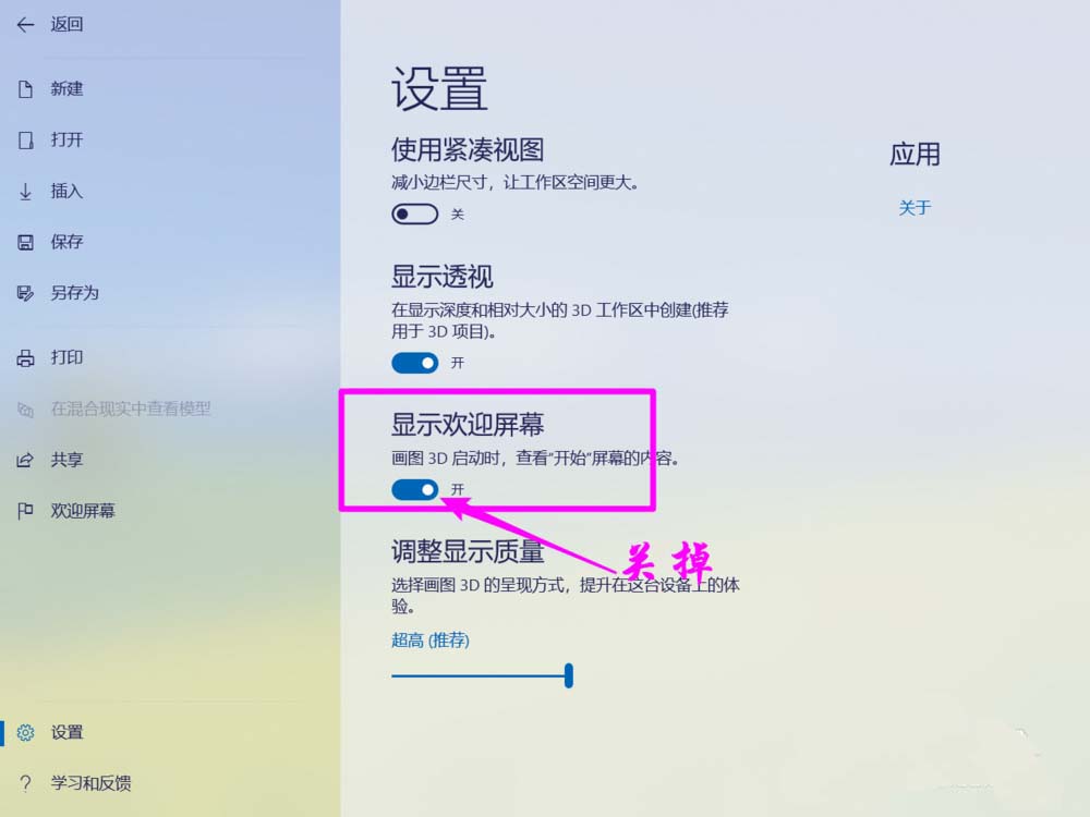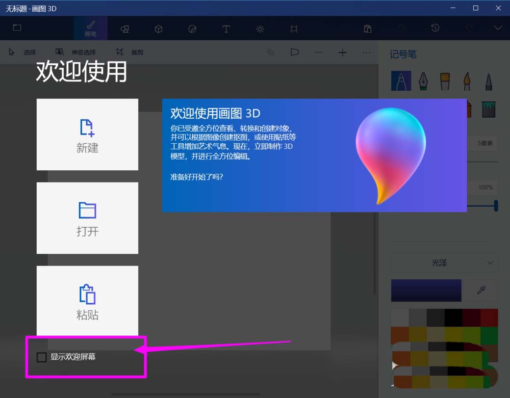 win10自帶的paint3d畫圖工具打開就顯示歡迎屏幕,每次都會顯示,該怎么不顯示呢?下面我們就來看看詳細的教程。