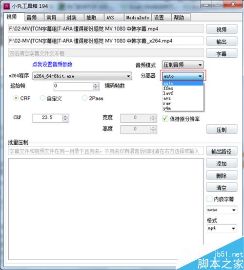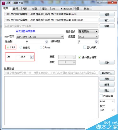 選擇壓制方法(如果不知道如何設(shè)置建議選CRF,如果選2pass碼率建議選擇1000Kbps)
