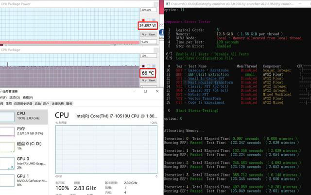 在28℃室溫下,基于AVX2指令集浮點計算的處理器考機可以穩定在25W功耗和64℃,頻率則穩定在2.8GHz左右,這個成績相當不錯,也在情理之中。