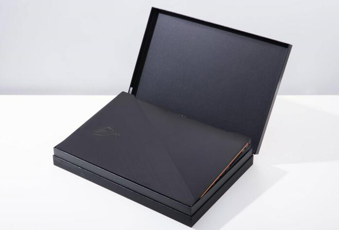 ROG 冰刃 4 Plus 的包裝延續(xù)了歷代經(jīng)典的黑橙風(fēng)格,黑色的背景 + 橙色的 Logo 標(biāo)識(shí)辨識(shí)度很高。