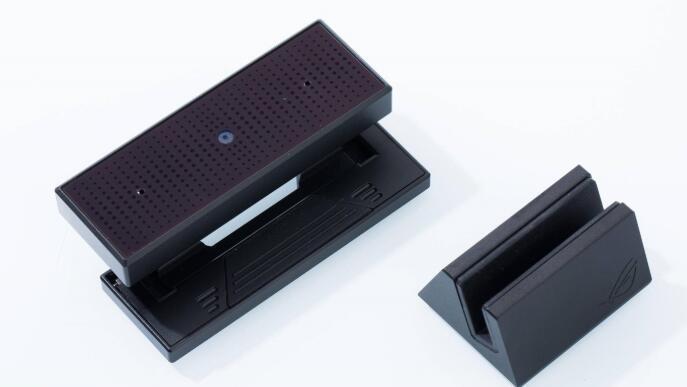 該分離式攝像頭包含一個(gè)兩段式本體和一個(gè)底座,既可以?shī)A在電腦上使用,也可以插在底座上單獨(dú)放置。
