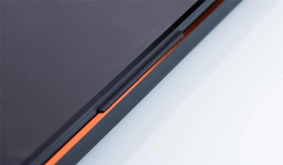 冰刃 4 Plus 的 B 面,由于采用了窄邊框設(shè)計(jì)且左上右三邊等寬,頂部沒(méi)有任何攝像頭開(kāi)孔。17.3 英寸的屏幕看上去視野確實(shí)大了一圈,雖然 B 面是塑料材質(zhì),但邊緣做了凸起的保護(hù)設(shè)計(jì),屏幕也稍微內(nèi)陷。