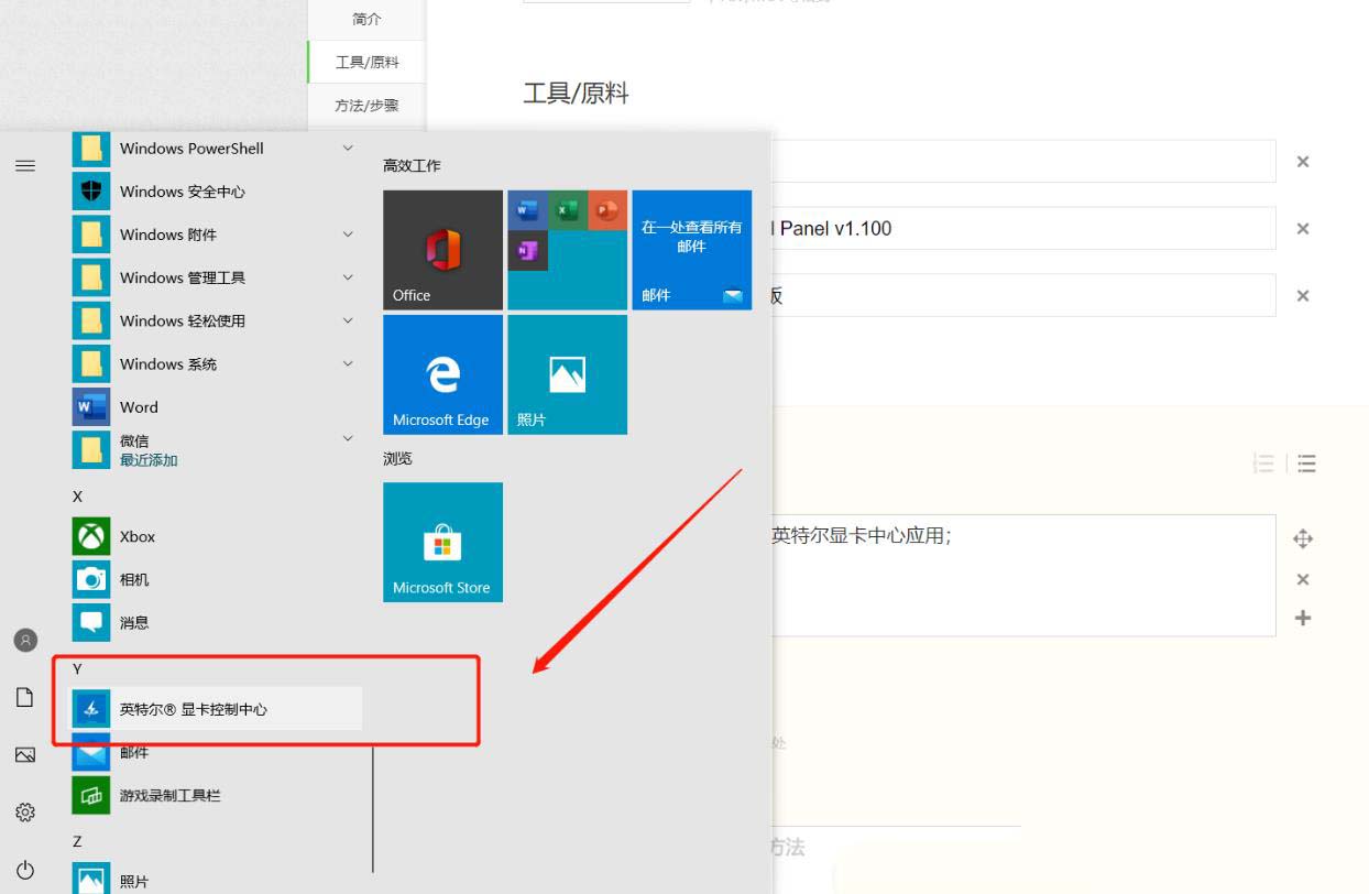 1、點擊 開始菜單,找到英特爾顯卡控制中心應(yīng)用;