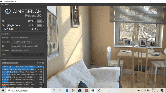 Cinbench R20多核成績達(dá)到了1770cb、單核成績426cb,這對(duì)于一款低功耗處理器的表現(xiàn)能力同樣令人滿意。