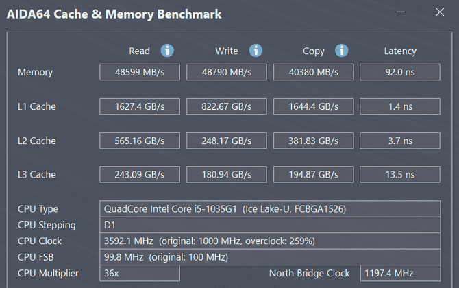 全新的adolbook13 2020搭載了雙通道8GB DDR4-3200 SDRAM,在數(shù)據(jù)讀寫速度方面,AIDA64測(cè)試中,讀取速度達(dá)到了48599MB/s,寫入速度達(dá)到48790MB/s,這已經(jīng)是屬于高端水平的速度,所以在內(nèi)存方面沒有壓力。