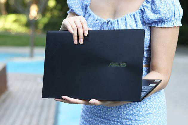 在配色方面,華碩靈耀14這次有松木青和丁香銀兩種配色,新浪數(shù)碼拿到的是松木青,這個(gè)配色有點(diǎn)偏黑灰,華碩官方有個(gè)比較文藝的描述是”翡翠為光,花青著色“,總之,配色加上華碩獨(dú)有的同心圓設(shè)計(jì),華碩靈耀14辨識(shí)度還是挺高的。