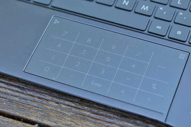 華碩靈耀 14的觸控板很有特色,把數(shù)字小鍵盤功能集成在觸控板上,在右上角有一個(gè)小觸控板開關(guān),按壓就會(huì)顯示出數(shù)字鍵盤,華碩官方叫做NumberPad 2.0,這個(gè)設(shè)計(jì)非常討巧,節(jié)省了空間也滿足了對(duì)小鍵盤有需求的用戶。
