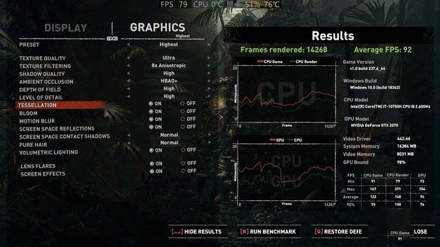 《古墓麗影:暗影》相對來說對硬件要求不算太高,所以在最高畫質下平均流暢度達到了92幀,神舟戰神Z9可以非常流暢的運行這款游戲。