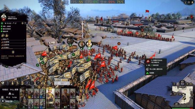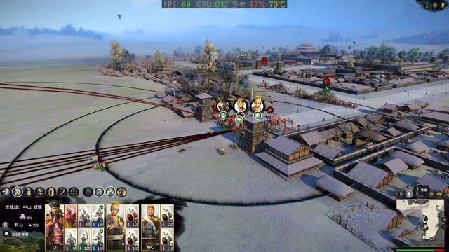 首先來看《全面戰爭:三國》的測試結果。我們在最高畫質測試下平均流暢度可以達到55-69幀,雖然沒有穩定在60幀以上,不過整體畫面還是比較流暢的。