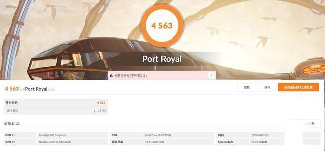 通過3DMark測試可以看到,其Port Royal光追測試得分為4563分;FSE圖形性能測試得分為9692分,說明其性能能夠滿足目前市面100%的游戲需求,并且在目前所有光追游戲中,都能在開啟光線追蹤之后達到流暢游戲表現。