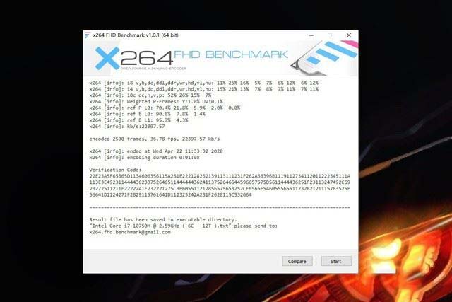 通過X264 Benchmark測試來看,6核心12線程效率極高,且高負載核心頻率能夠穩定在3.5GHz左右,最終僅用時1分08秒就完成了2500 Frames的編碼計算,效率進一步提升。