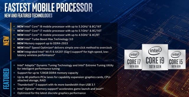 英特爾十代酷睿H系列處理器進行了多個方面的升級,具體如下: