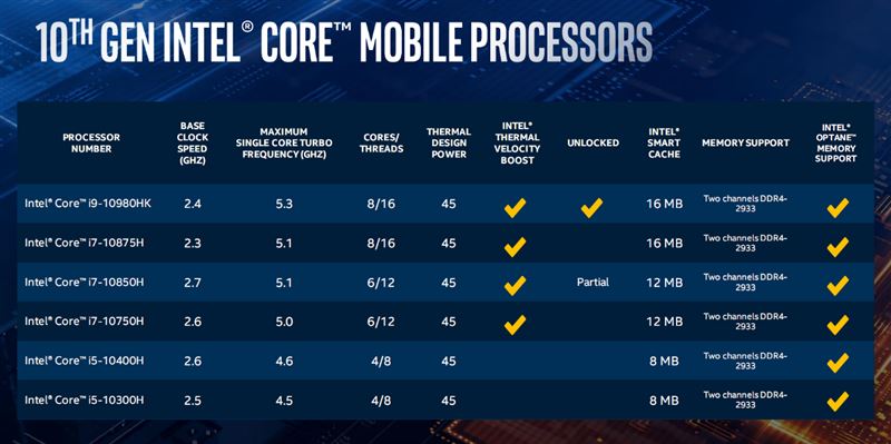 2020年4月2日,Intel又發(fā)布了代號為Comet Lake-H的第十代智能英特爾酷睿高性能移動版處理器,在處理器領(lǐng)域第一次全面突破5GHz技術(shù)壁壘,正式將移動處理器帶入了5GHz的時代。