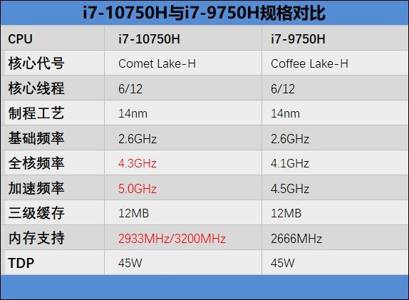 可能會有不少玩家吐槽為什么還是14nm,其實經(jīng)過改良的14nm(算下來應(yīng)該是14nm+++)早已經(jīng)是脫胎換骨,頻率更高,功耗更低,因而45W的i7-10750H更夠戰(zhàn)勝60W的i7-9750H。