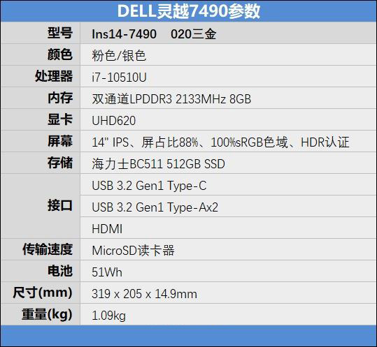 戴爾靈越7490最大的特色就是輕薄,采用鎂鋁合金機身,并經過24道精湛工藝打造,凈重僅有1.09kg,目前市面上比這更輕的14寸輕薄本屈指可數。