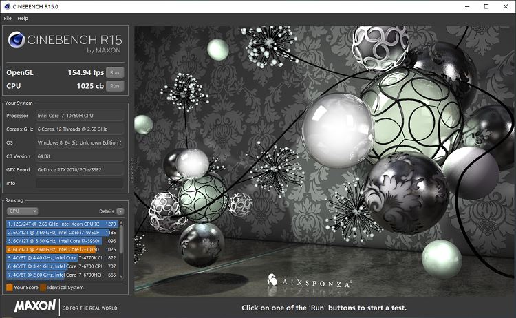 CPU部分使用CINEBENCH R15和CINEBENCH R20對CPU進行跑分測試,測試結果如下: