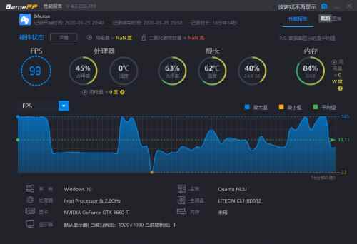 顯卡搭載的是NVIDIA GeForce GTX1660Ti,型號參數為:最新圖靈架構,12nm制造工藝,1536個流處理器,192bit顯存帶寬,配備6GB GDDR6顯存。