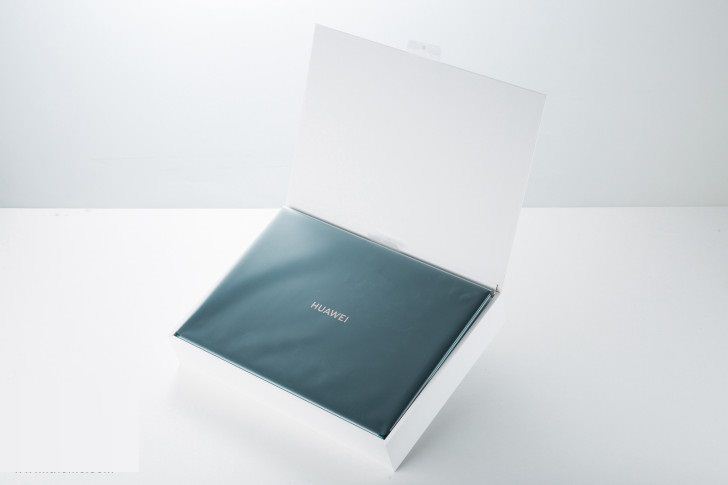 華為MateBook X Pro 2020款的包裝依舊延續了前代簡約大方的造型,以大面積的白色背景為主,正面印有華為和產品的金色名稱。