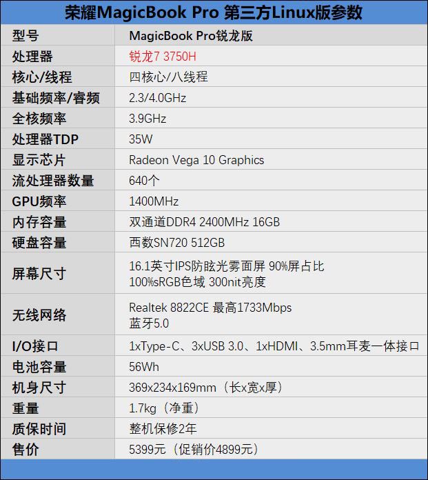 這里并不是說Linux系統(tǒng)有多好,而是在采用了Liunx系統(tǒng)之后,MagicBook Pro銳龍版的售價從5899元直接降到了5399元,足足便宜了500元之多。