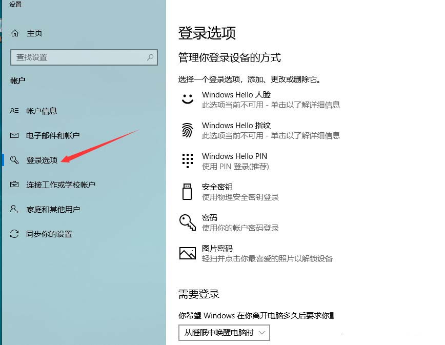4、進入windows 10電腦設置后,點擊選擇登錄選項。