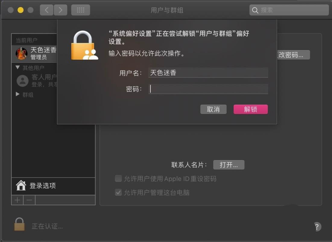 2、點擊左下角,那么輸入Air的密碼解鎖。