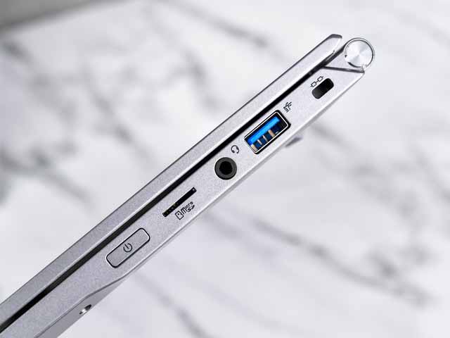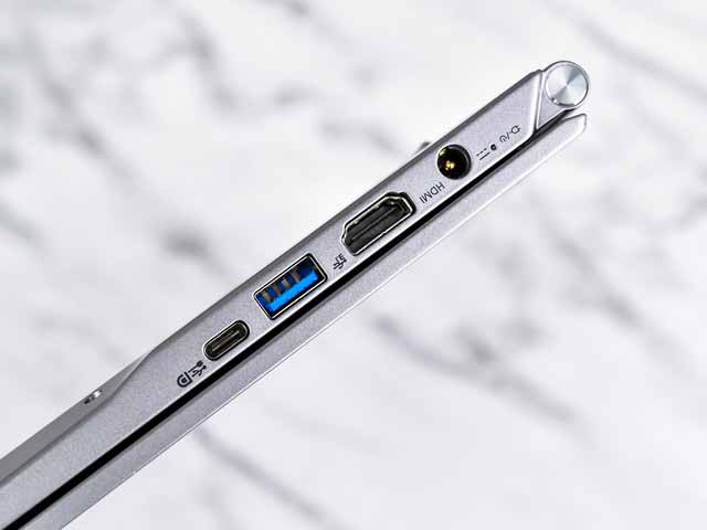 雷神MixBook Air的接口還是比較齊全的,機身左側接口分別為電源插口、HDMI、USB3.1、全功能Type-C,右側接口分別為鎖孔、USB3.0、3.5mm耳麥、TF卡槽、電源鍵。從接口數量和種類上看,雷神MixBook Air擁有2個Type-A和一個全功能Type-C,還有HDMI,擴展性相當好。