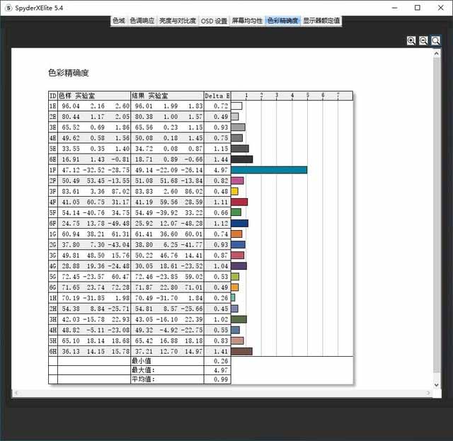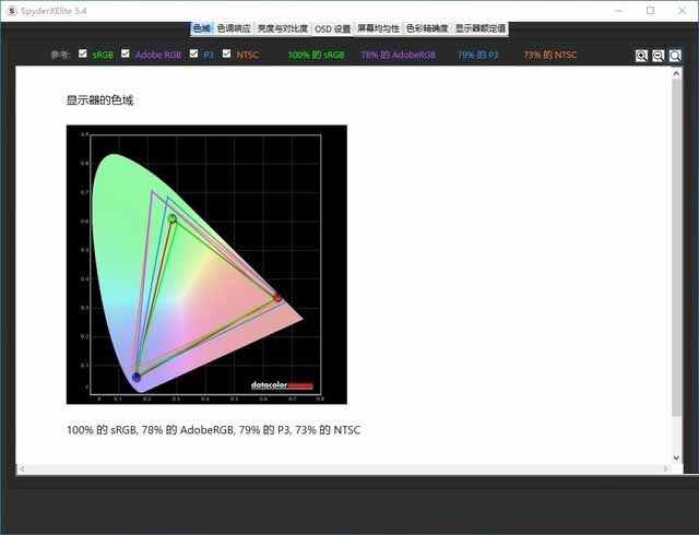 雷神MixBook Air采用了一塊14英寸全高清IPS屏幕,表面為霧面處理。屏幕兩側為窄邊框設計,上邊框也比較窄,屏占比還是不錯的。我使用SpyderX Elite進行測試,得到色域覆蓋100% sRGB、78% AdobeRGB、79% P3、73% NTSC,最高亮度287cd/m2,ΔE=0.99。從測試數據上可以看出,這是一塊高色域屏幕,而且屏幕亮度和色準均表現出色。