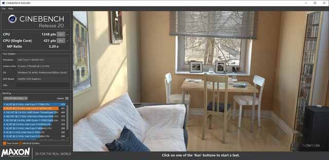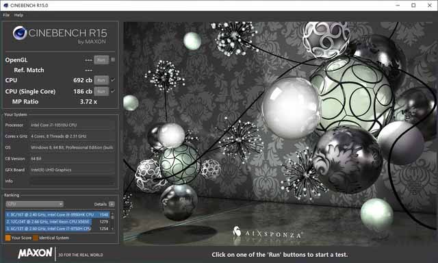 i7-10510U是一顆四核心八線程處理器,基礎頻率1.8GHz,最大睿頻4.9GHz,三級緩存8MB。實測Cinebench R15多核692cb、單核186cb。Cinebench R20多核1348pts、單核421pts。從結果來看,i7-10510U的短時性能表現很不錯,時間稍長有降頻情況。