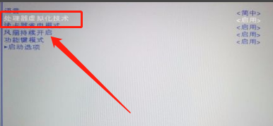 2.進(jìn)入“處理器虛擬化技術(shù)”這個(gè)選項(xiàng)。