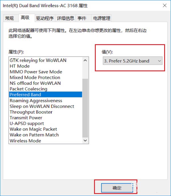 5、選擇首選頻帶之后,我們選擇右側的3首選5G頻帶,這樣筆記本電腦就可以連接5g頻段的wifi了,如下圖所示: