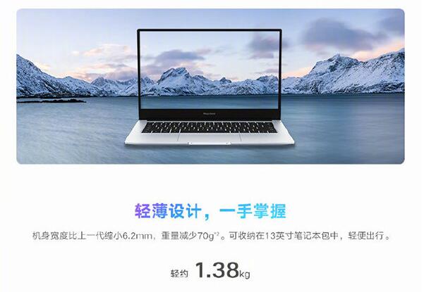 榮耀MagicBook 14大約為1.38KG,薄約15.9mm。新一代的榮耀MagicBook 14更加小巧,也更加輕薄。機身寬度比上一代縮小6.2mm,重量減少70g。拿在手里不覺負擔,亦可收納在13英寸的筆記本包中,輕便出行。榮耀MagicBook 15在輕薄上下了大工夫。通過優化機身的立體堆疊架構,使機身輕約為1.53KG,薄約16.9mm。拿上它,即可體驗15.6英寸的大屏幕和輕薄機身。