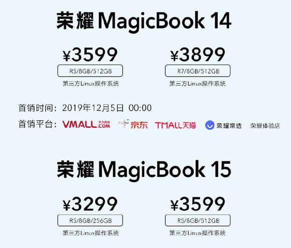 科技嘗鮮版的榮耀MagicBook 14 R5/8GB+512GB版本售價3599元,R7/8GB+512GB售價3899元,榮耀MagicBook 15 R5/8GB+256GB版本售價3299元,R7/8GB+512GB售價3599元。