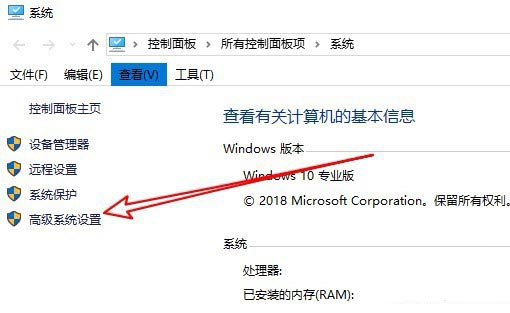 2、在打開的系統(tǒng)窗口中點擊左側(cè)邊欄的“高級系統(tǒng)設(shè)置”的菜單。