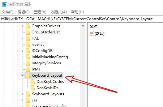 3、在打開的注冊表編輯器窗口中定位到Keyboard Layout的注冊表項。