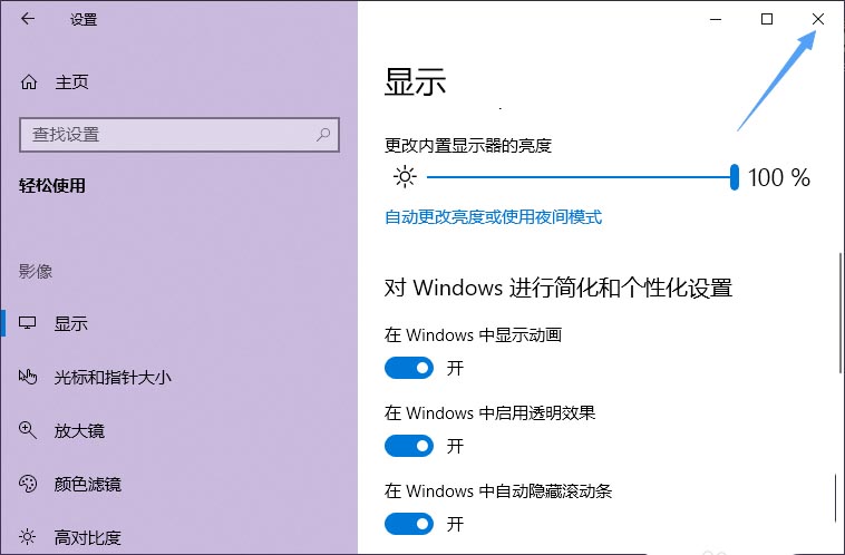 6、點擊關閉按鈕即可。這樣便開啟了在windows中顯示動畫